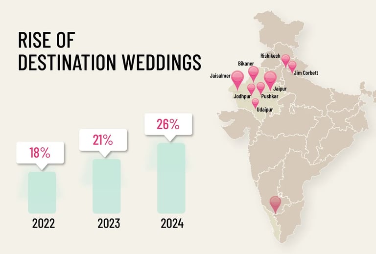 Simultaneously, India’s wedding market is evolving: Extended celebrations spanning two to three days, growing guest lists, and destination weddings are now common, pushing resorts to maintain high occupancy—often over 100 days yearly, in line with auspicious dates in the Hindu calendar (at least 52 “muhurat” days per year). In this backdrop, the ICE sector’s evolution isn’t just about convenience—it’s driving new economic value in hospitality, tourism, and allied businesses, and shaping future infrastructure needs across leisure and event-driven travel.